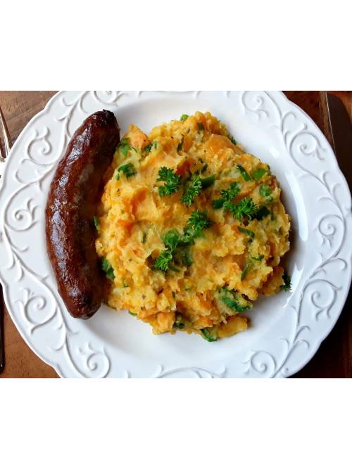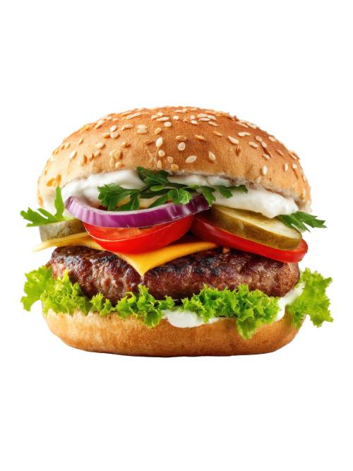 Het rundvlees in het half om half gehakt en Angusburgers is gemaakt van grasgevoerde Angus koeien.